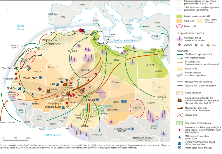 Rekacewicz, P. (2012). “Sahara-Sahel: movements and routes”. Le Monde Diplomatique. Recuperado de https://mondediplo.com/maps/saharasahel