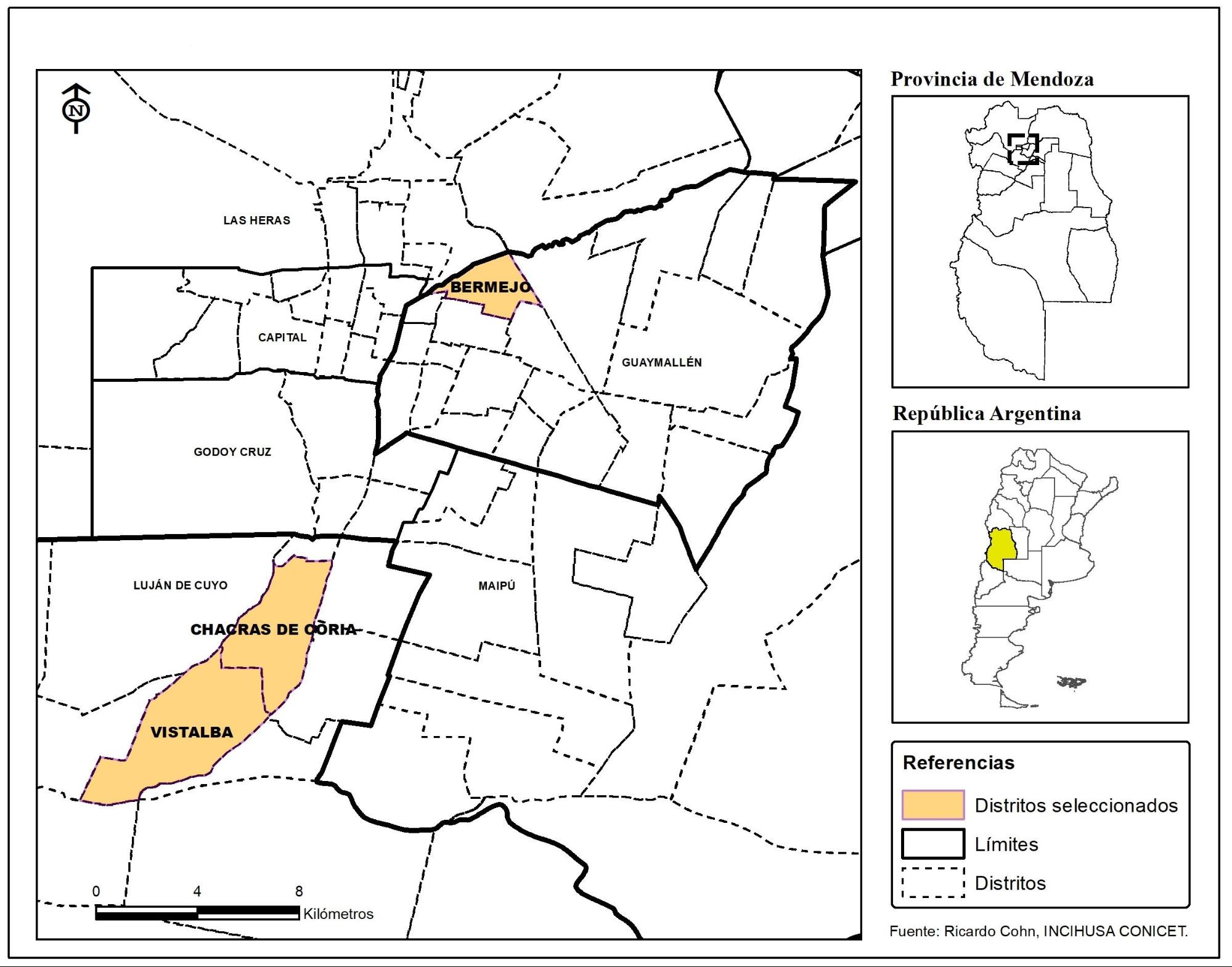 Figura N°1. Chacras, Vistalba y El Bermejo en el AMM
