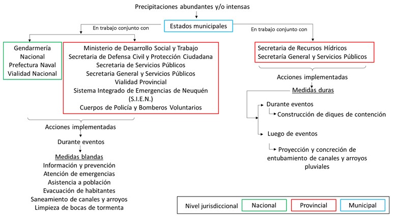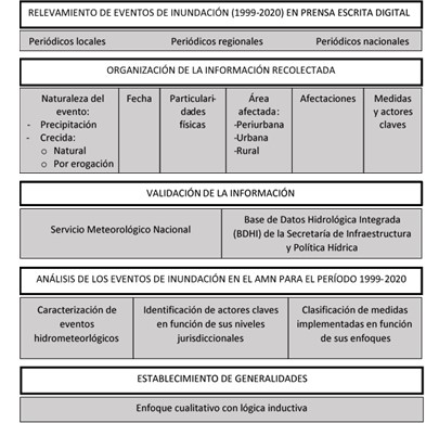 Los espacios verdes públicos (EVP) sobre las costas del río Limay en el Área Metropolitana de Neuquén (AMN) pueden representar herramientas para la gestión del agua. Para el diseño de tales instrumentos es importante conocer la dinámica local de amenazas hidormeteorológicas. El objetivo de este trabajo es analizar, desde una perspectiva histórica con base en la prensa escrita digital, la ocurrencia de eventos relacionados a amenazas hidrometeorológicas (eventos de exceso hídrico debidos a crecidas fluviales y precipitaciones intensas y/o abundantes) en el AMN y en particular, en torno a los EVP ubicados sobre la costa del río Limay para el período 1999-2020. Se relevaron 131 artículos periodísticos y la información recolectada se validó mediante bases de datos hidrometeorológicas. La metodología permitió clasificar los eventos según origen y naturaleza, así como caracterizarlos en función de sus particularidades físicas; afectaciones resultantes en áreas urbana, periurbana y rural; actores involucrados de distintas jurisdicciones y acciones efectuadas. Medidas blandas prevalecieron previo y durante eventos y medidas duras posterior a ellos. Puntualmente, las consecuencias en EVP resultan en impedimentos para sus usuarios. Los registros históricos brindan información inicial, útil e integral para el análisis de la incidencia de procesos hídricos en las ciudades.