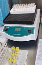 Imágenes de la bancada, pipeteo y equipo empleado en el procesamiento de muestras y en la técnica de radioinmunoanálisis (RIA). Ilustran la instrumentación y la operatoria del laboratorio responsable de la cuantificación (Imágenes propias).