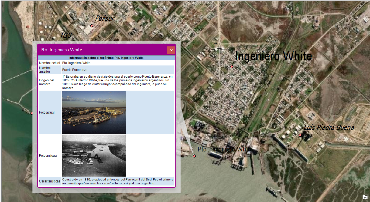 Keywords: Toponyms; Geotechnologies; G.I.S.; Ingeniero White; Geography; Pop-up windows