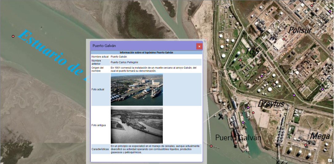 Figura N° 4. Visualización de la ventana emergente del topónimo “Puerto Galván”