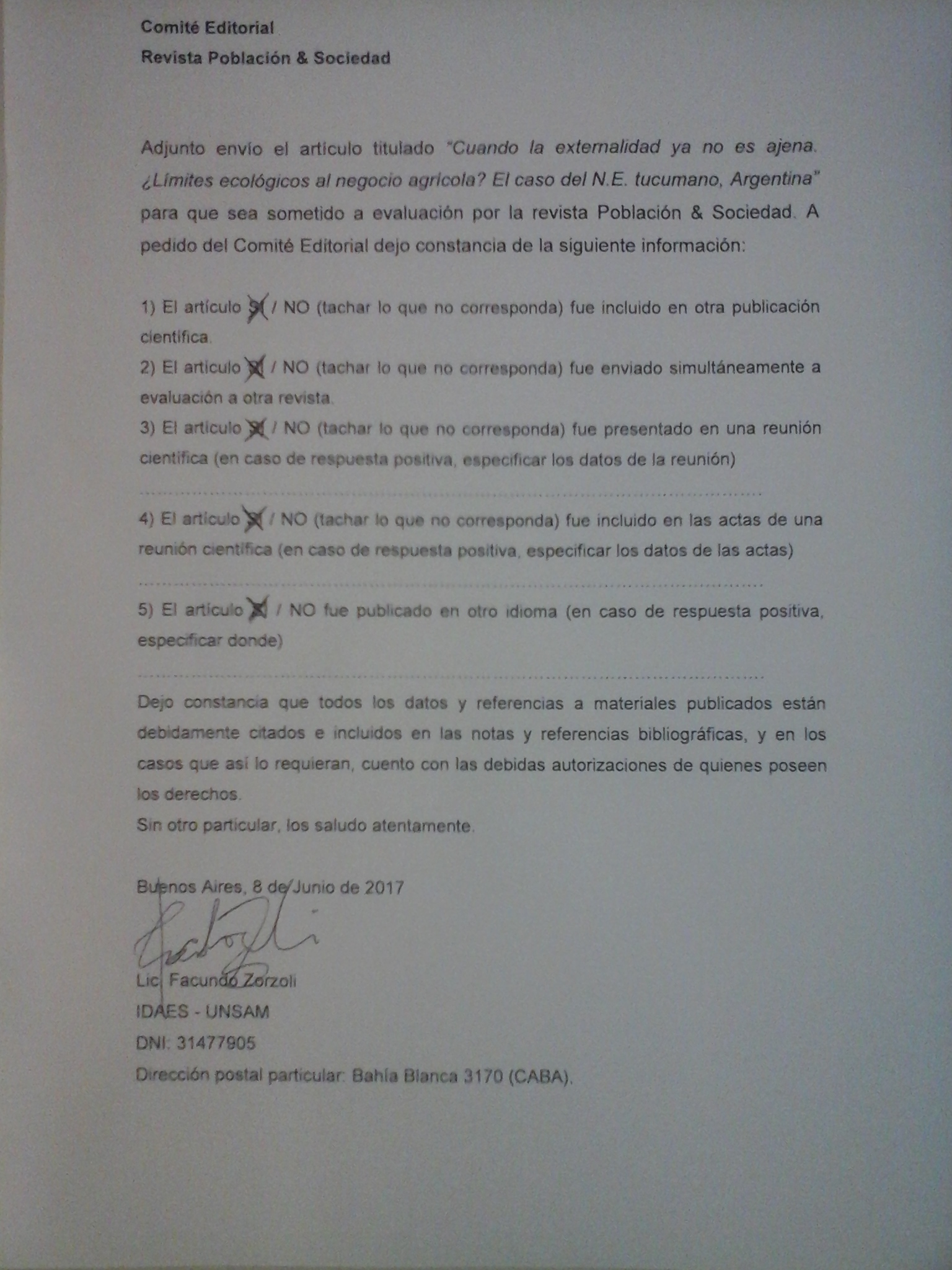 Facundo Zorzoli, Programa de Estudios Rurales y Globalización. Instituto de Altos Estudios Sociales. Universidad Nacional de San Martín.